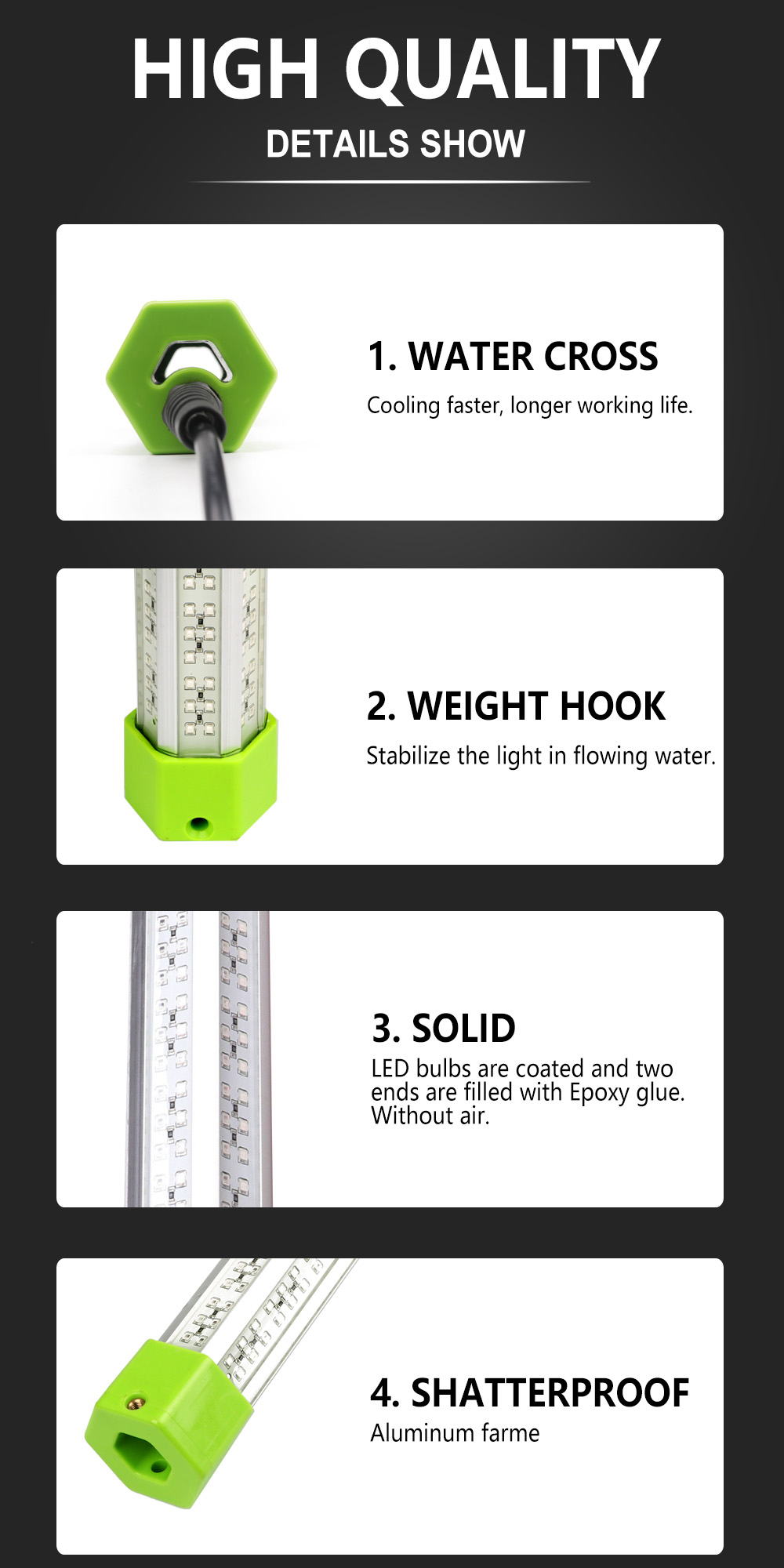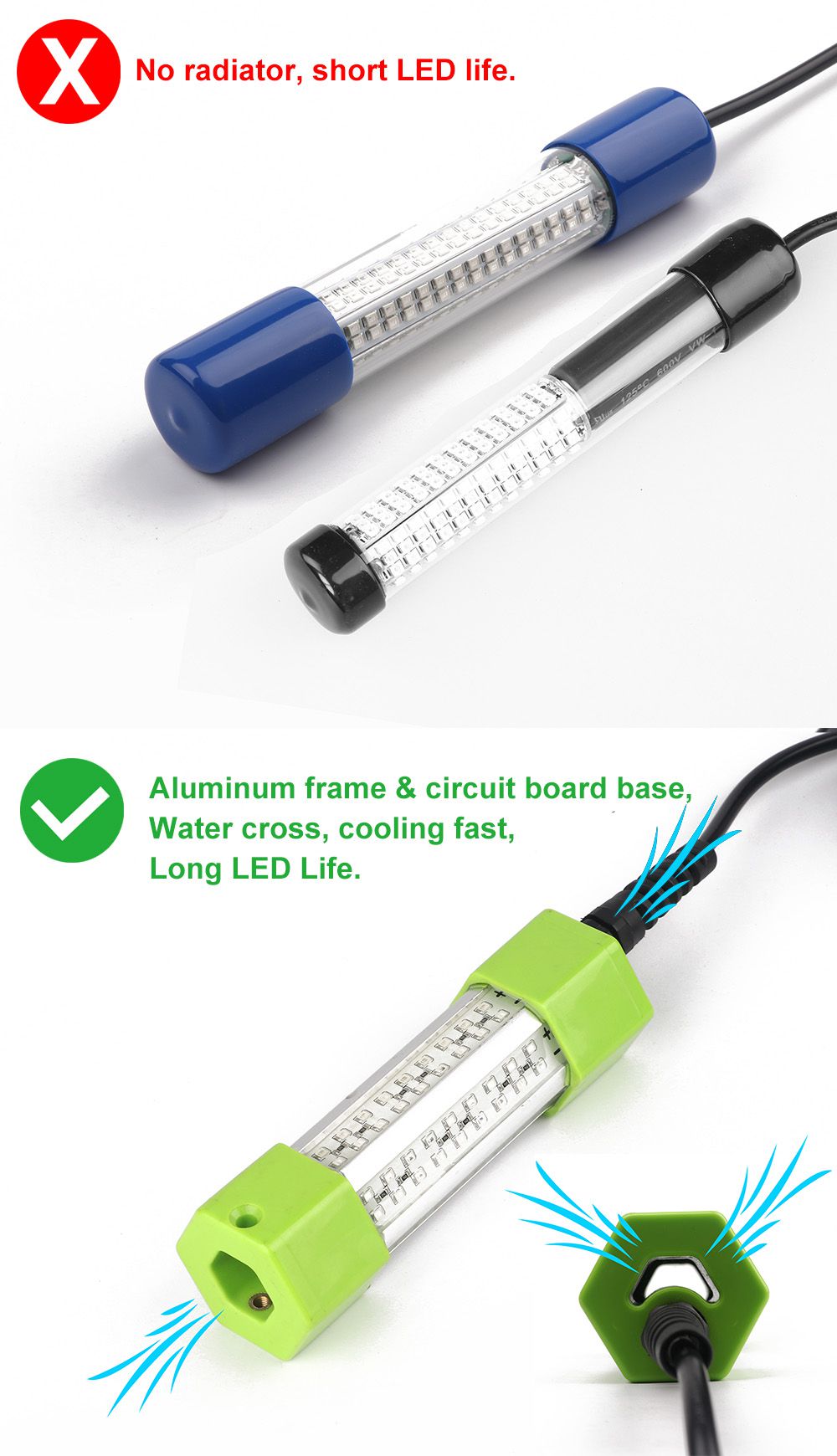 Specifications for DC12V 50W/160W Dimmable LED Fish Submersible Underwater Fishing Light
